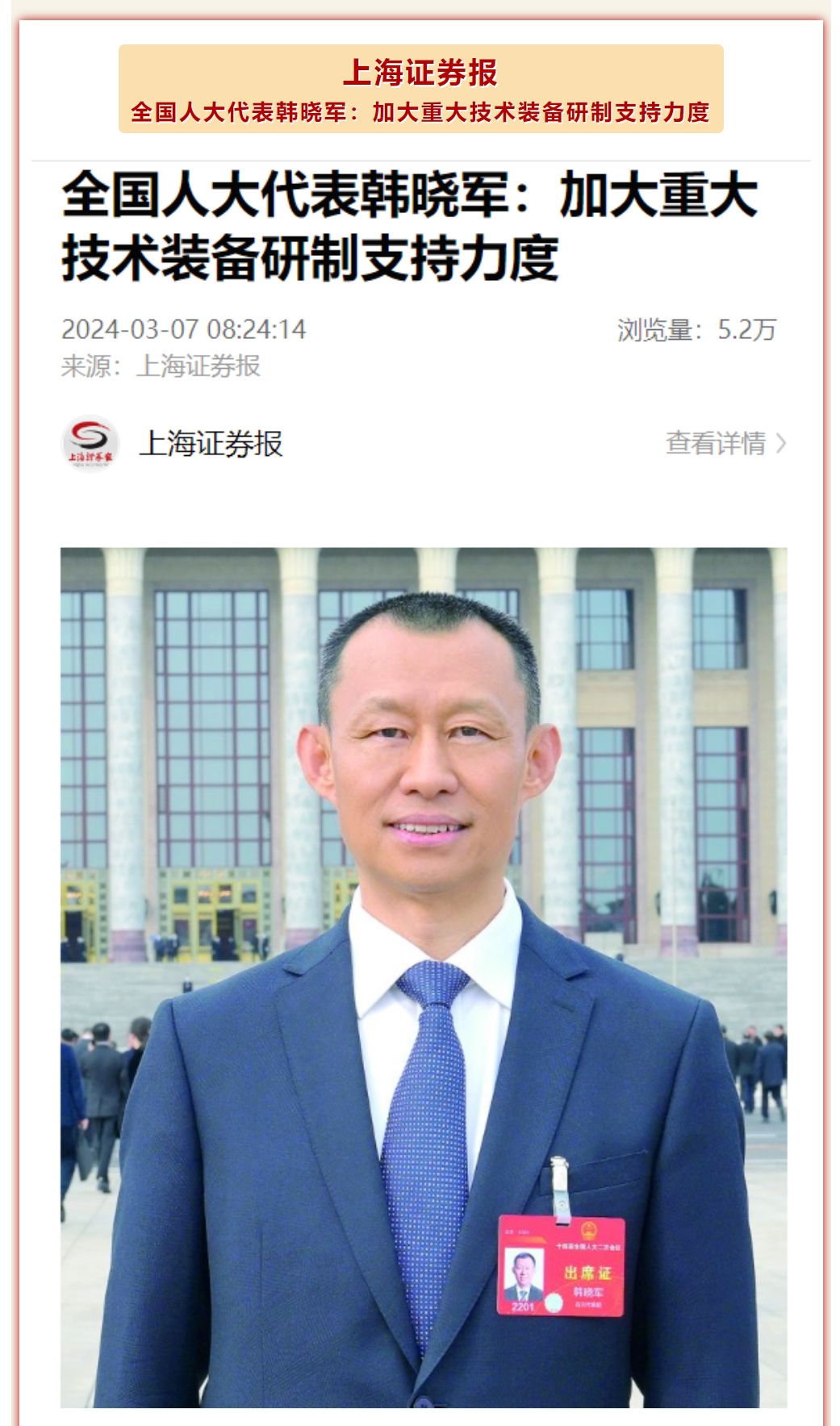 聚焦两会 主流媒体持续关注报道全国人大代表韩晓军建议
