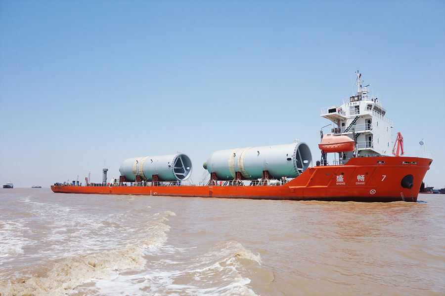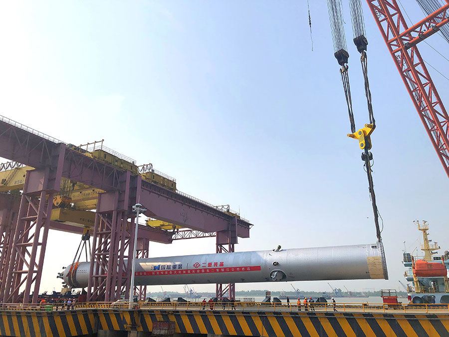 二重装备承制的世界最大、最重的中石化镇海项目260万吨/年沸腾床渣油锻焊加氢反应器扬帆启航(胥秀娟 摄)