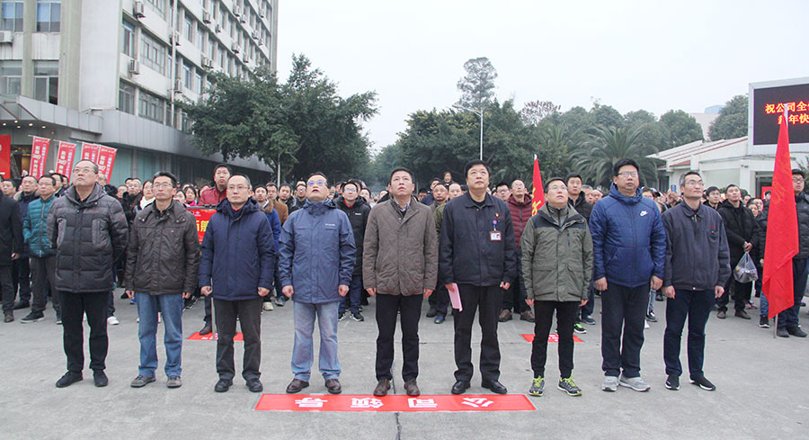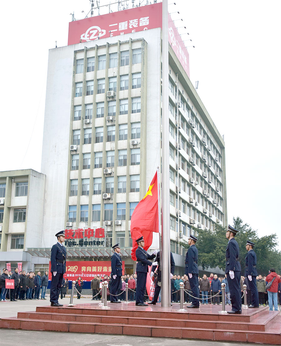 升旗仪式后,二重装备党委书记、董事长闫杰发表了热情洋溢的新年致辞。闫杰满怀激情地说,在举国上下深入学习贯彻习近平新时代中国特色社会主义思想和党的十九大精神,全面总结改革开放40年伟大历史、伟大成就、宝贵经验,意气风发踏上新时代继续改革开放壮丽征程之际,我们聚集在这里,隆重举行二重装备元旦升国旗仪式,共同迎接2019年的到来!共同祝愿新中国70华诞风调雨顺,国泰民安,繁荣昌盛!值此辞旧迎新的美好时刻,闫杰代表公司向全体二重人致以节日的问候和新年美好的祝福!