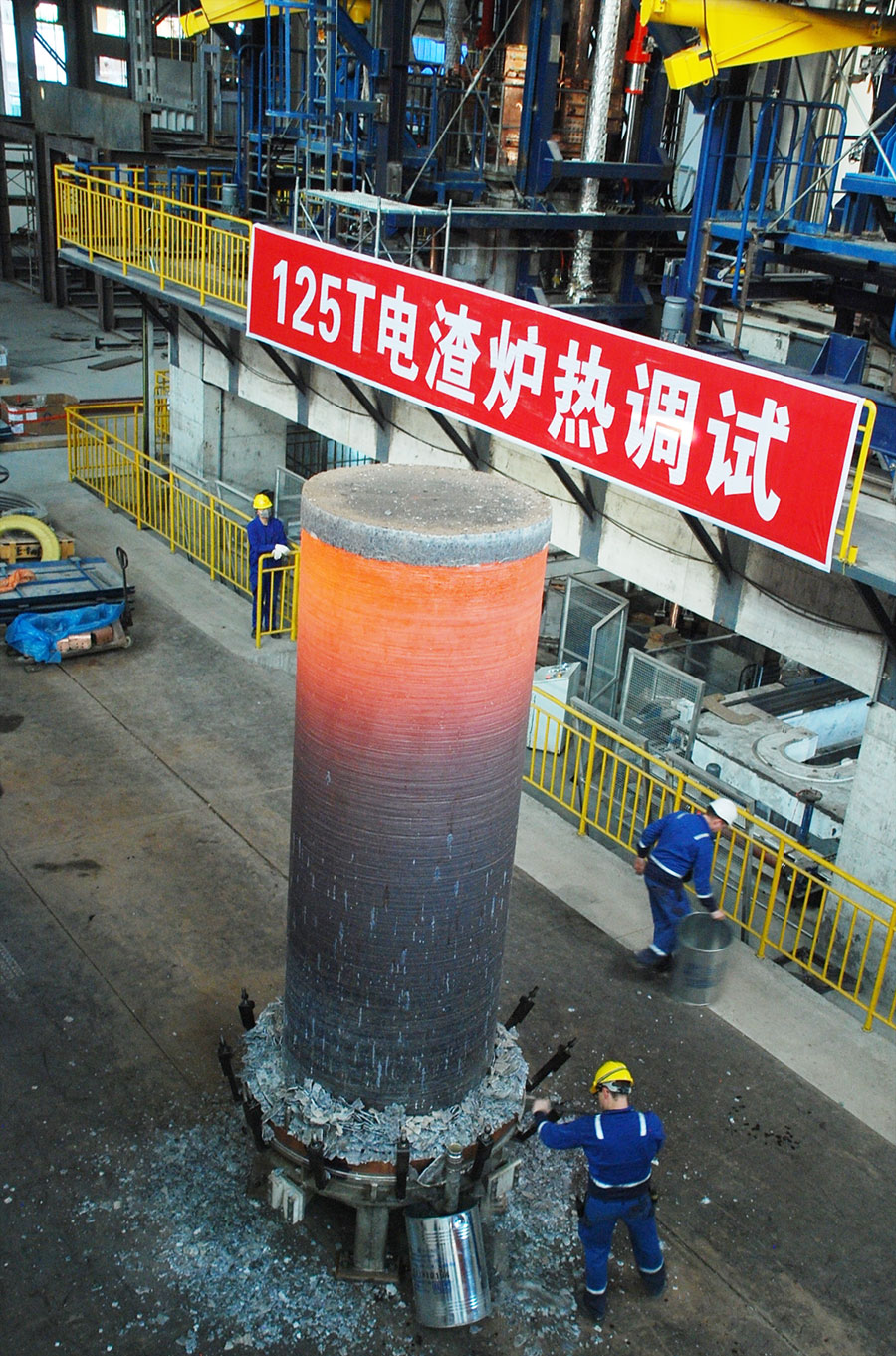电渣重熔技术能有效解决传统冶炼浇注方法的制造缺陷,提升产品性能,其产品在航空、航天、核电等领域中被广泛应用。该电渣重熔炉是国内首台具有国际先进水平的大型冶炼设备,是二重装备占领高端铸锻件市场、调整产品结构,突破高端锻件生产瓶颈的攻坚利器。