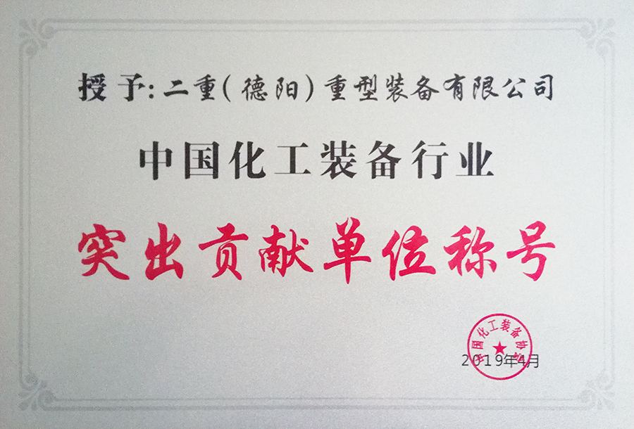 4月14日,在山西省太原市召开的“2019年度全国压力容器及承压部件行业大会暨中国化工装备协会成立30周年庆祝大会”上,二重装备荣获 “中国化工装备行业突出贡献单位称号”。
