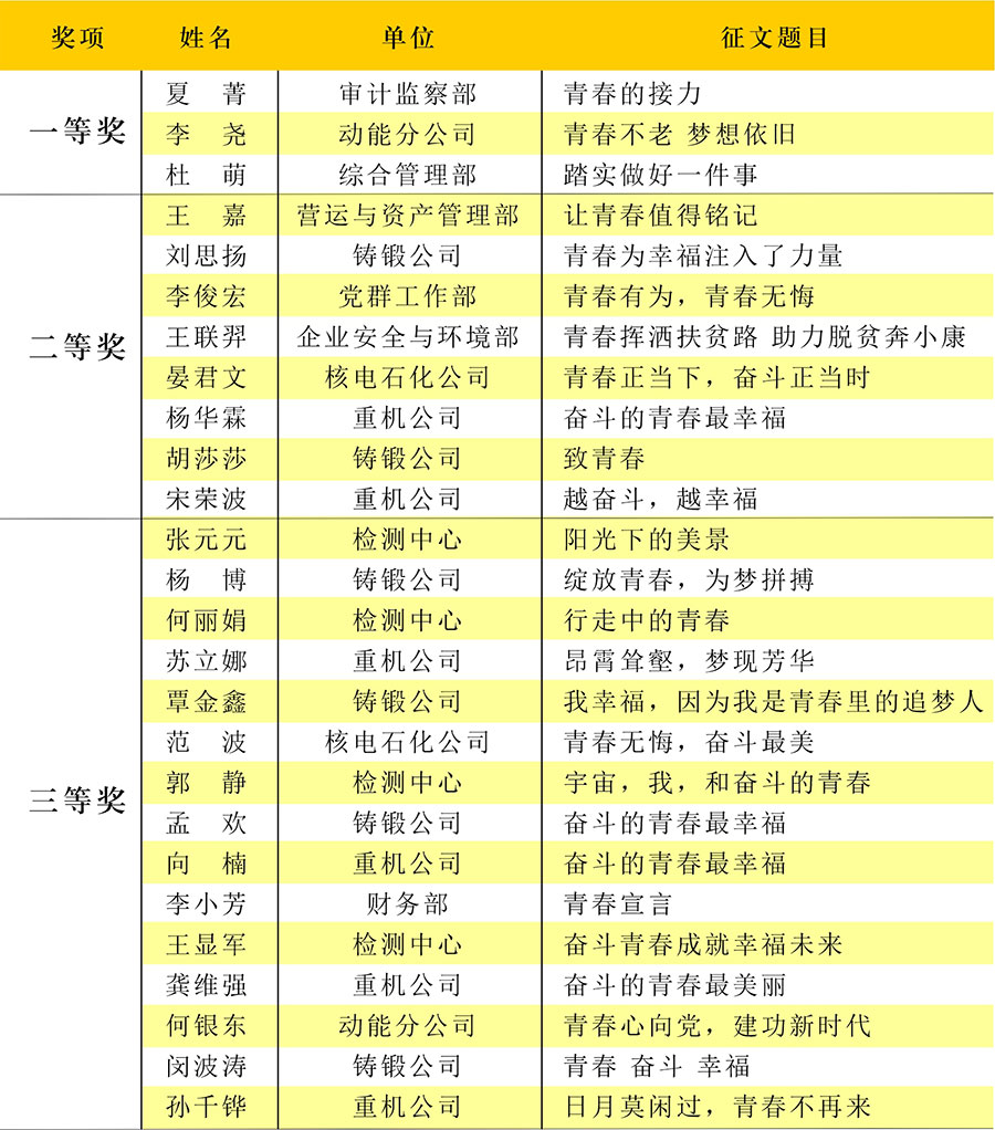 参赛征文经过初评、终评, 26篇征文分获一、二、三等奖,此次活动得到了公司各级团组织的大力支持。