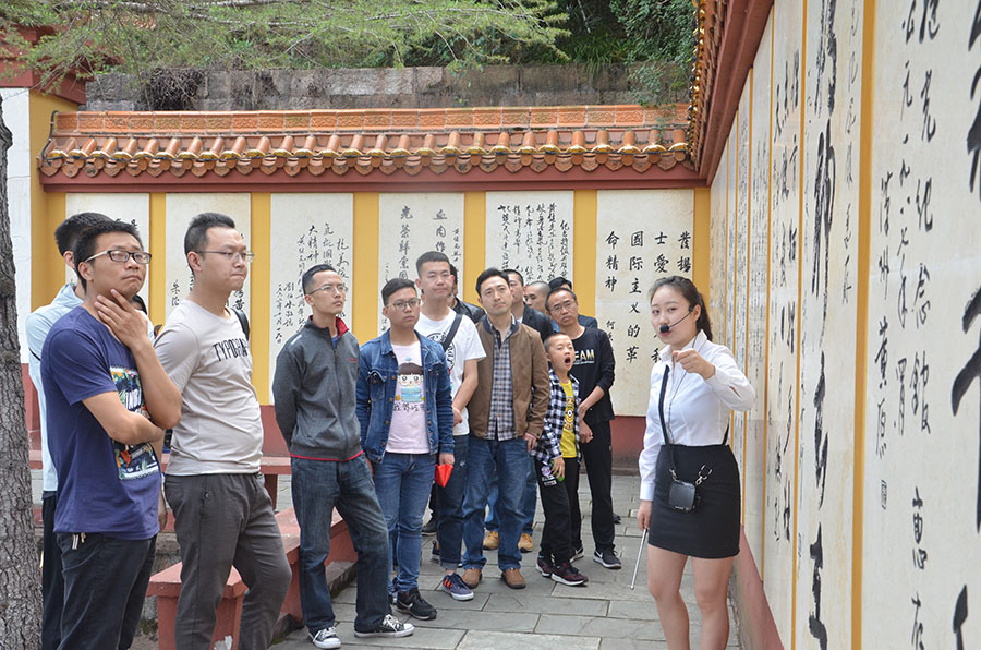 “起来,不愿做奴隶的人们……”大邑县建川博物馆烈士雕像群前响起了嘹亮的国歌声,综合团支部24名团员青年齐唱国歌,表情肃穆,雄壮的国歌声将每个人的心都汇集在了一起。4月27日,综合团支部赴大邑建川博物馆开展了“青春心向党•建功新时代”特别主题团日活动。活动包含重温入团誓词、齐唱国歌、团旗下的演讲等多项内容。