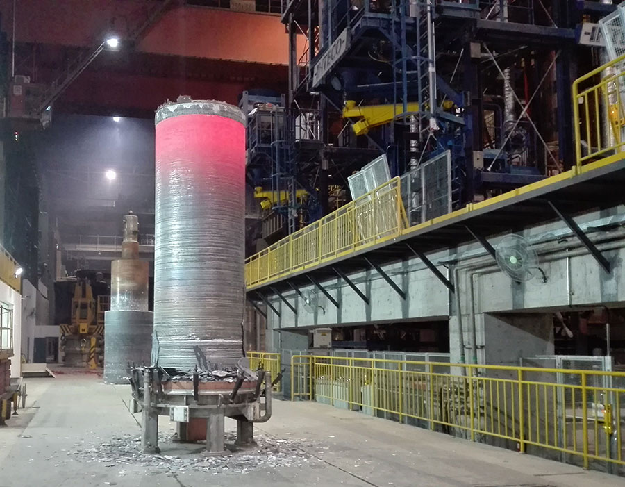 近日,二重装备重点技改项目125吨电渣炉主工位历时70多小时,冶炼出单重达90吨的电渣重熔钢锭,设备安装调试工作又迈出关键的一大步。截至目前,125吨电渣炉已成功冶炼出3支电渣重熔钢锭。