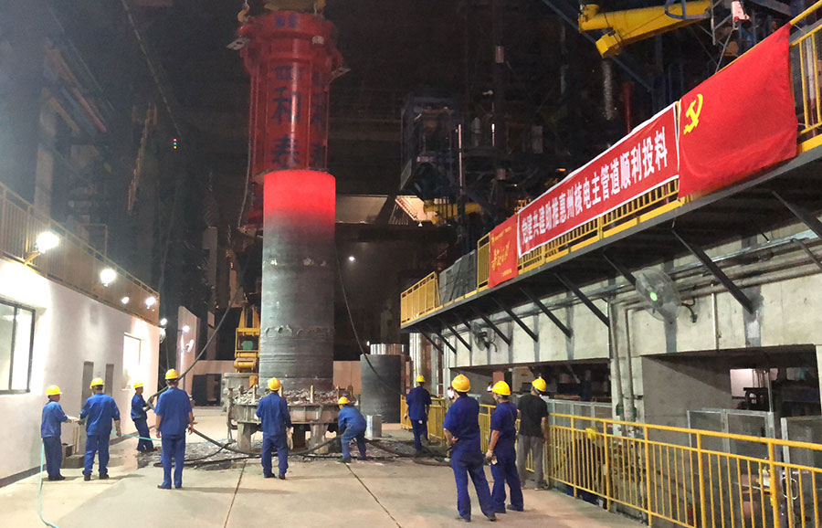 二重装备投建的全国最大125吨电渣炉成功冶炼核电主管道冷段评定件110吨电渣重熔钢锭,用于新建的2台“华龙一号”融合技术核电机组产品制造,这在二重装备尚属首次。