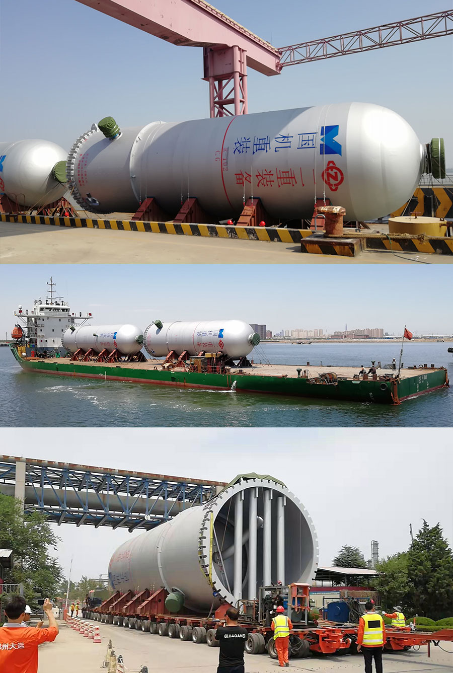 6月初,该项目6台设备分批次陆续从镇江公司完工出厂,分三个航次,经长江、黄海、渤海顺利运抵天津港。设备单台最大重量一千余吨,运输总重达到了5600吨,创造了万路公司石化成品单个项目运输重量的新高。