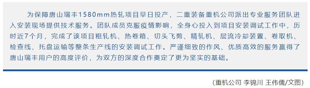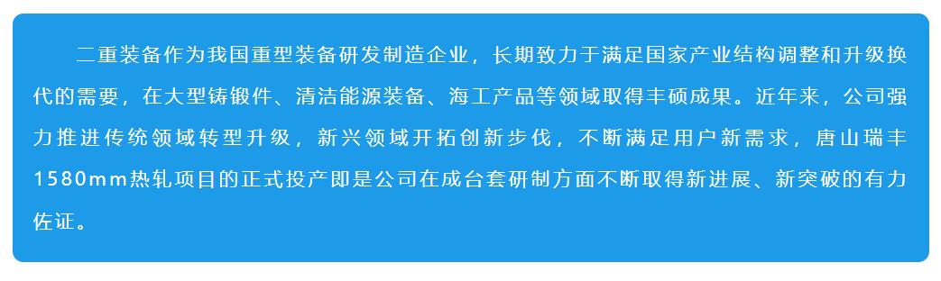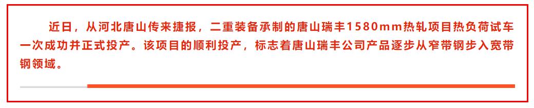 二重装备承制的唐山瑞丰1580热轧项目顺利投产