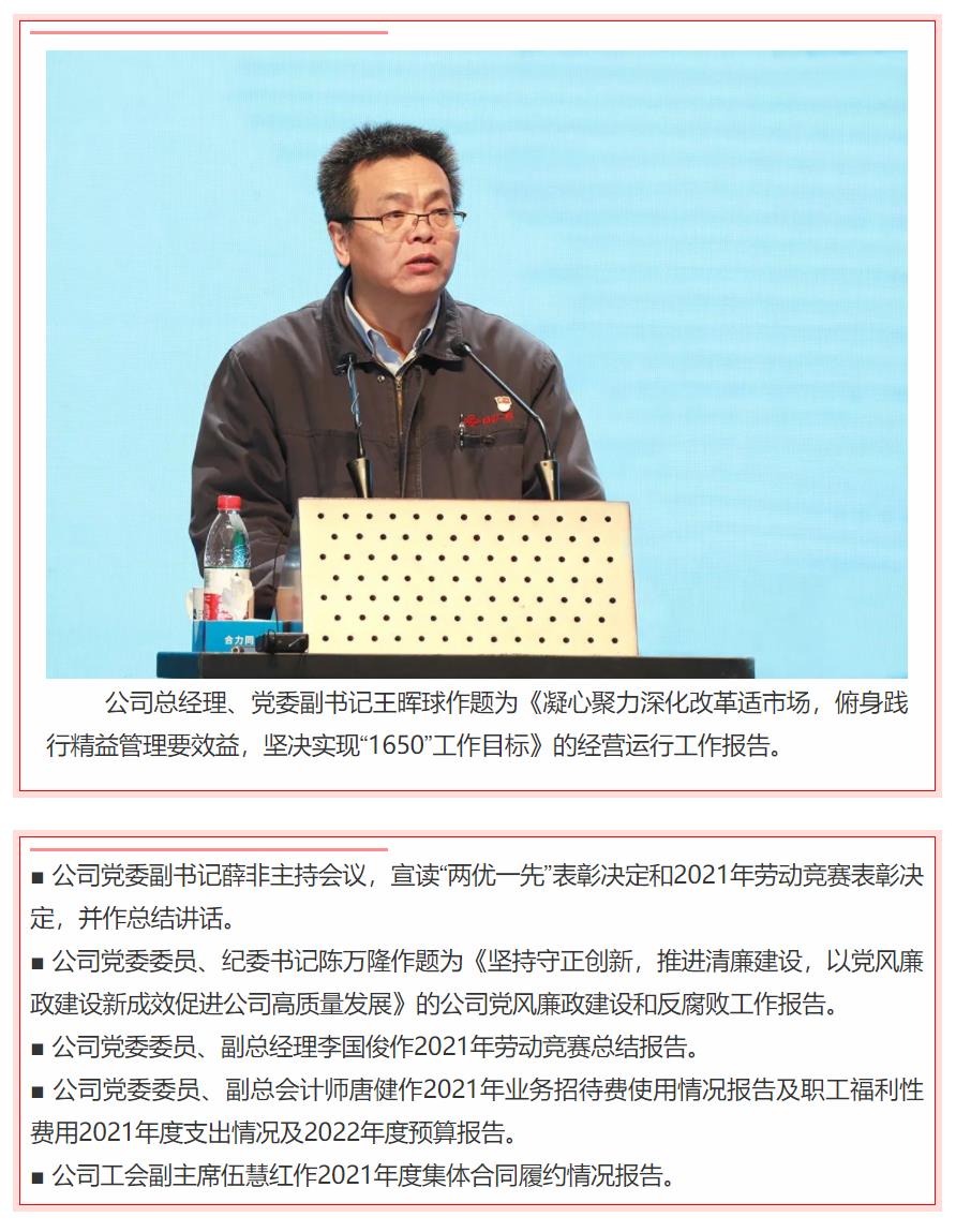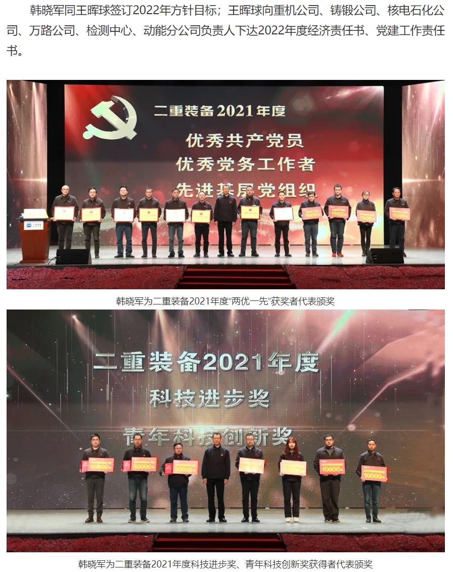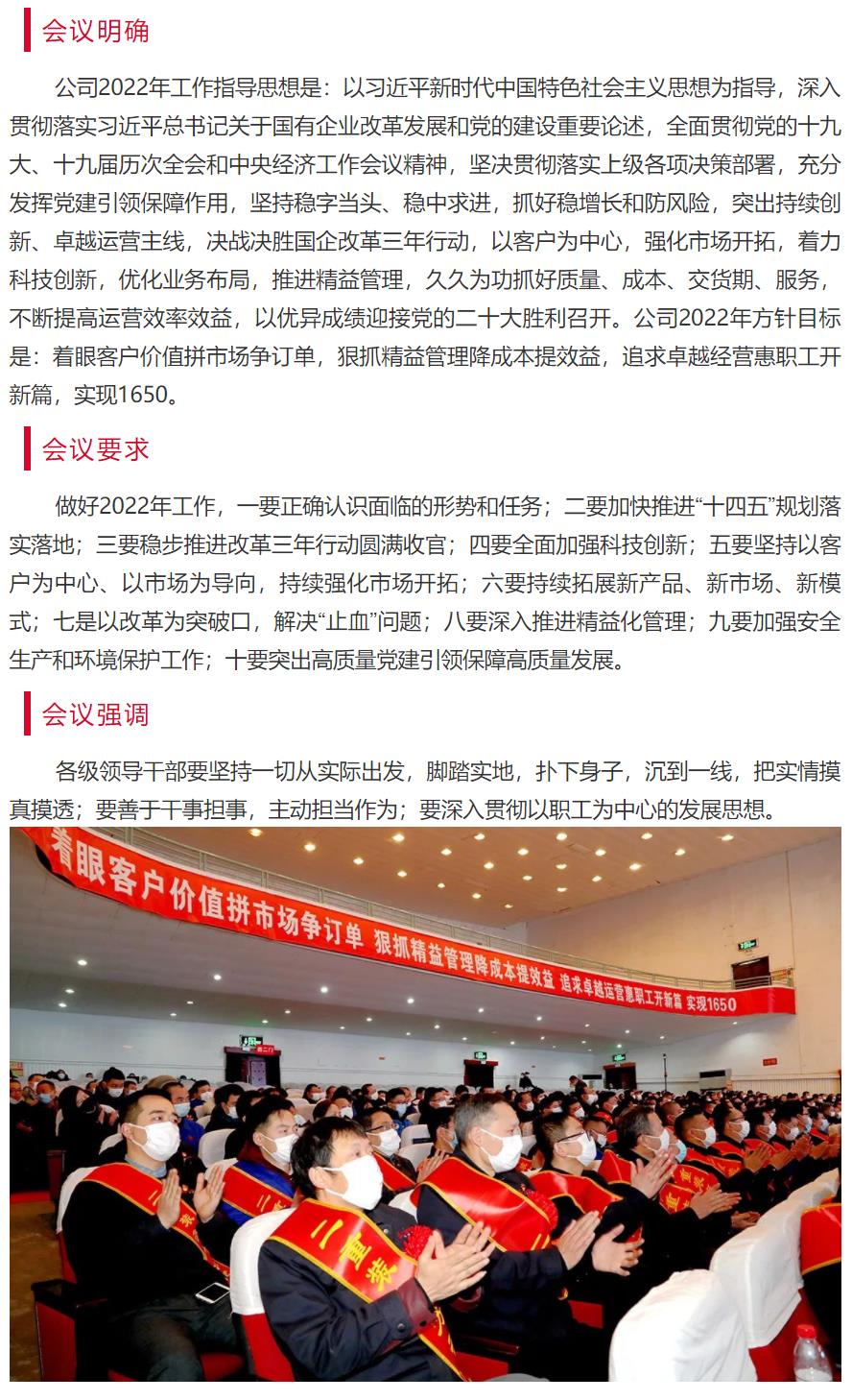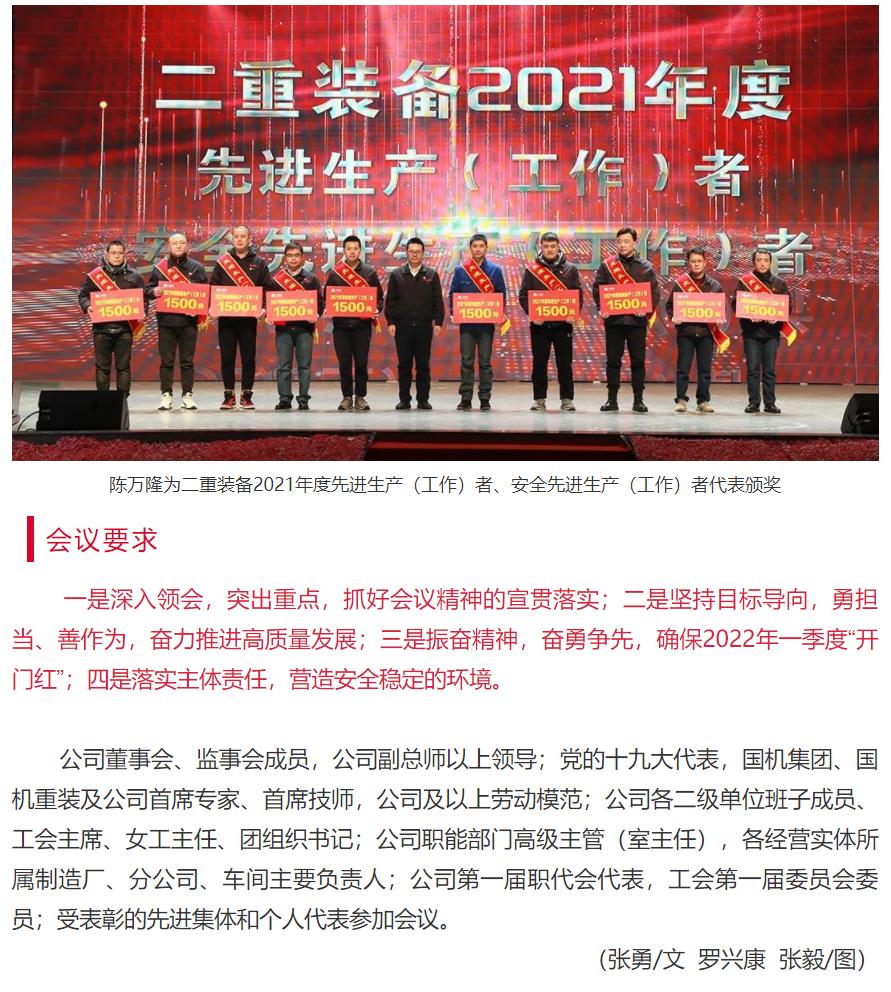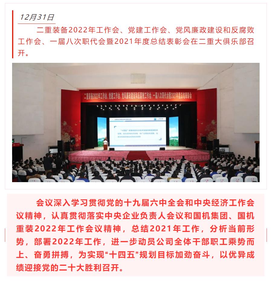 二重装备召开2022年工作会、党建工作会、党风廉政建设和反腐败工作会、一届八次职代会暨2021年度总...