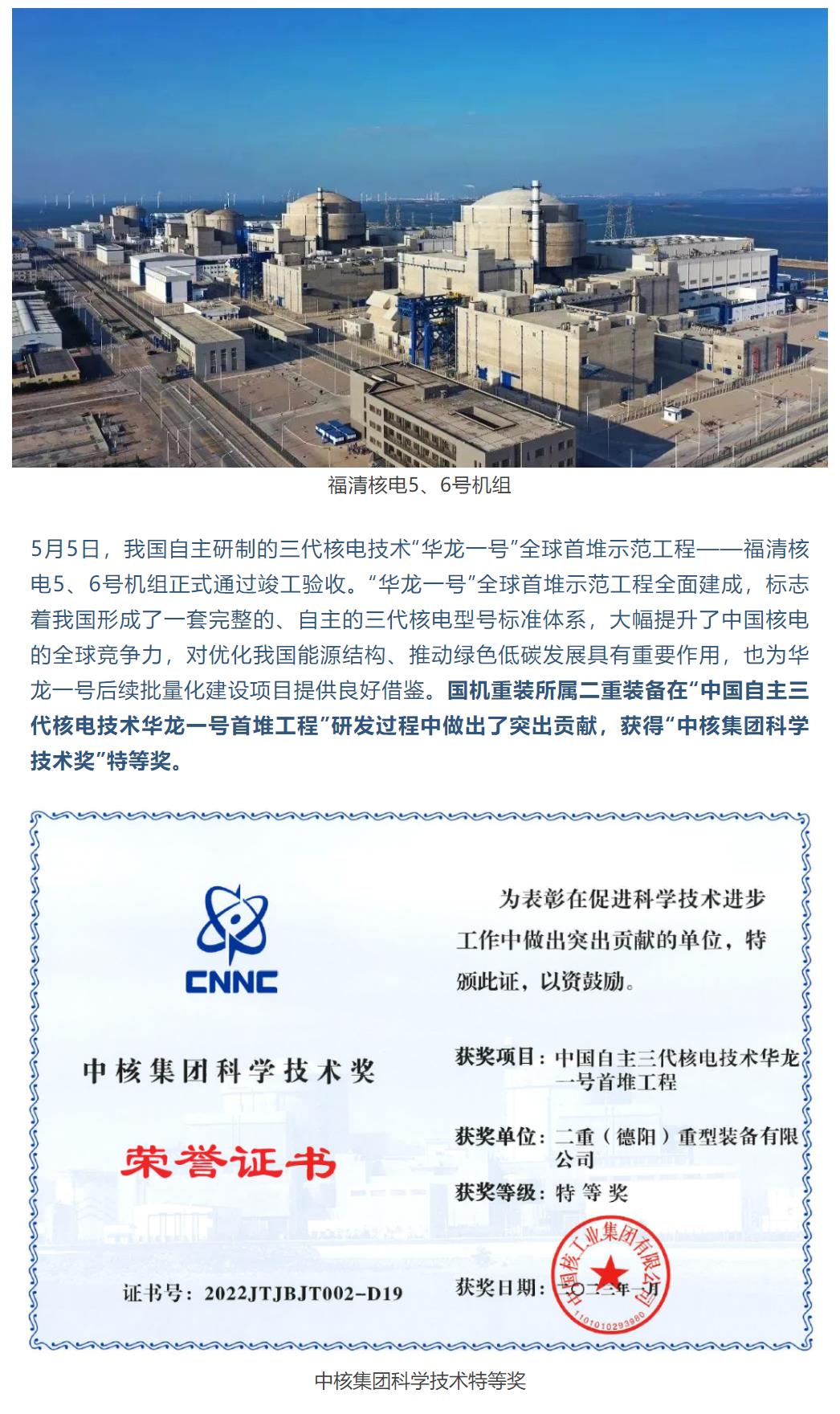 助力“华龙一号”全球首堆示范工程 | 获“中核集团科学技术特等奖”