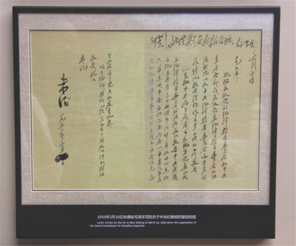 这是朱德给毛泽东写的关于中央纪委组织建设的信。